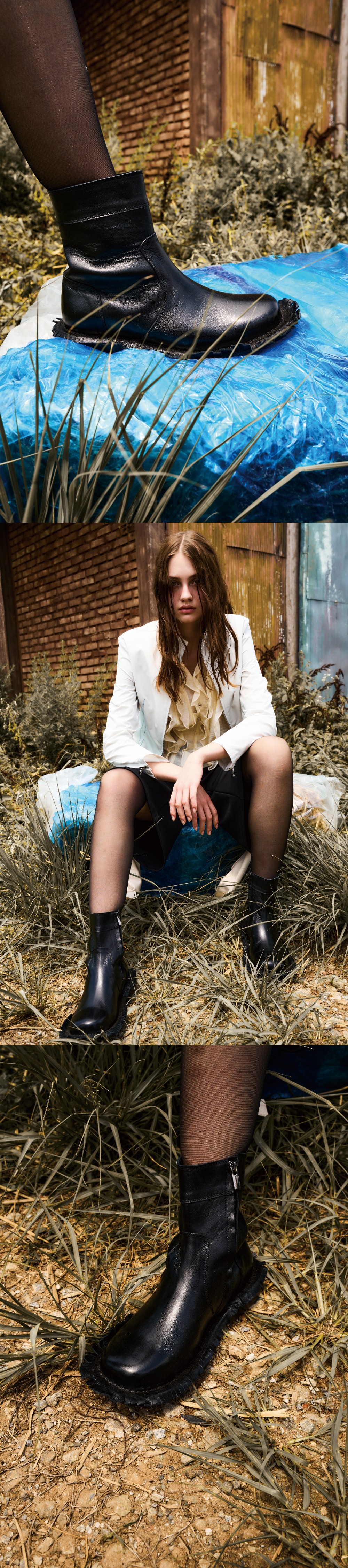 네거티브쓰리 프린지 사이드 집업 미들 부츠 블랙