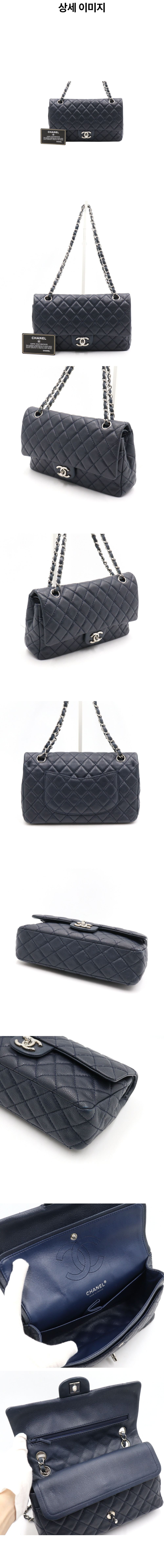샤넬 A01112 시즌 한정 투톤 네이비 소프트 캐비어 클래식 미듐 은장체인 숄더백 aa48317