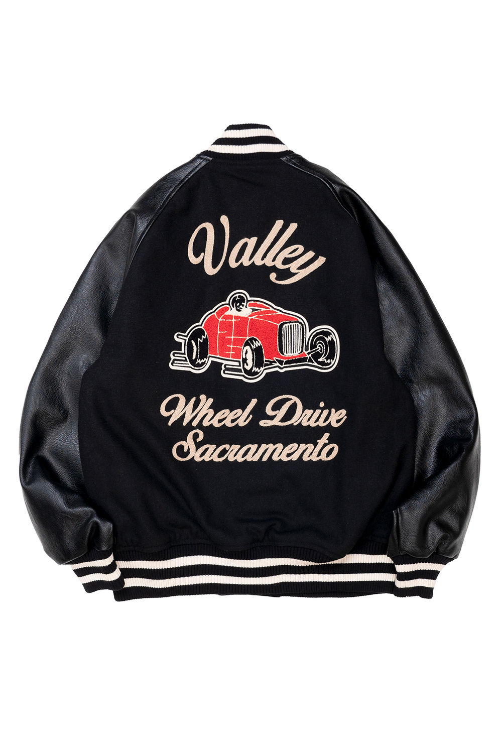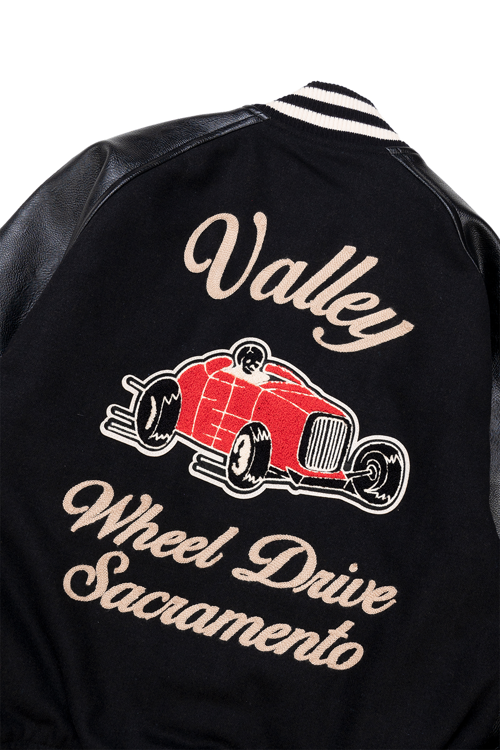 Houston Japan 51517 Melton Award Jacket (VALLEY) - Black 바디에는 부드럽고 발색이 좋은 두꺼운 울 멜튼 천을 채용, 소매에는 페이크 레더를 사용한 어워드 재킷입니다. 전면부에는 양쪽 가슴의 매력적인 레터링들과 후면부에는 50년대 자동차 디자인을 채용하여 빈티지한 느낌을 체인 자수에 의해 표현한 것이 특징입니다. 소매 통의 폴리에스터 안감은 핑크 컬러를 채용한 제품입니다. 방한성도 갖추며 착탈도 부드럽고 이너와의 간섭도 적기에 편하게 착용 가능한 제품입니다. * Wool 50% / Polyester 50% * 빛에 의한 제품의 색감 차이가 존재 할 수 있습니다. * Made In China