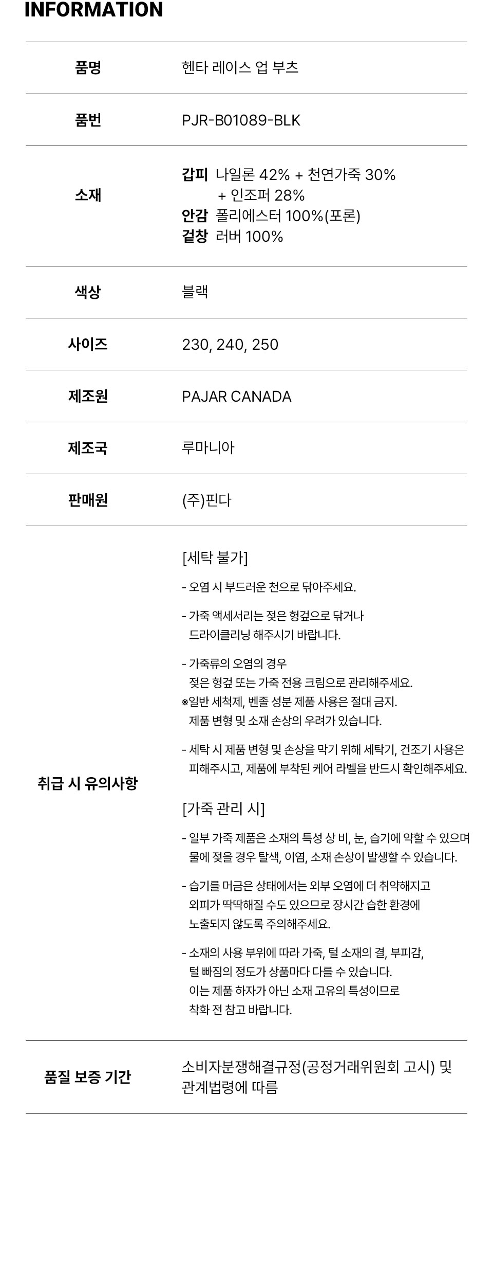 파잘 헨타 레이스 업 부츠 블랙