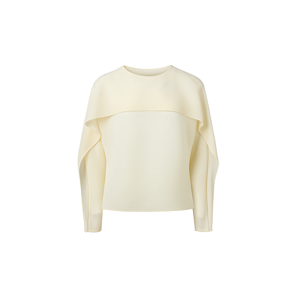 몽플리쎄 여성 플랩 소매 호리즌 플리츠 티셔츠 아이보리