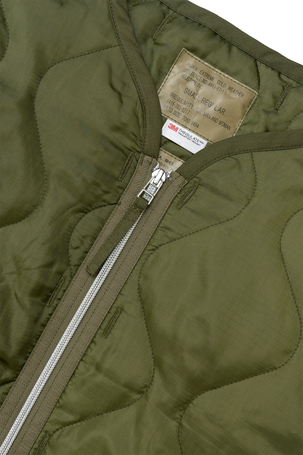 "Houston Japan의 5409M M-51 Parka"의 립스탑 원단을 사용한 신슐레이트 라이너입니다. 기존 제품의 기모 라이너도 보온성이 좋지만, 신슐레이트를 사용함으로 보온성을 더 높일 수 있습니다. 퀼팅이 들어간 립스탑 원단은 착용했을 때 편안함과 탈부착이 용이한 장점이 있습니다. 기존의 기모 라이너와 다르게 프런트 지퍼와 사이드 포켓으로 단품으로도 착용 가능합니다. * "Houston Japan의 5409M M-51 Parka" 전용 라이너 단품 상품입니다. * S 사이즈가 5409M의 XXXXS, M 사이즈가 XXXS, XXS, L 사이즈가 XS, S, XL 사이즈가 M, L 사이즈에 맞는 상품입니다. * Shell : Polyester 100% * Liner : Polyester 100% * Other Cloth : Cotton 100% * Filling : Polyester 100% * 빛에 의한 제품의 색감 차이가 존재 할 수 있습니다. * Made In China