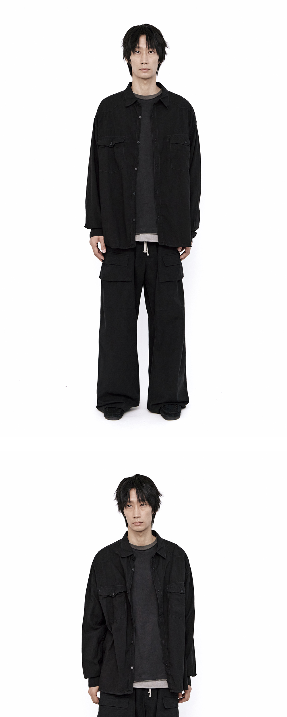loosed tenco western shirts - black, dark purple navy - 많은 사랑을 받은, 텐코 셔츠의 웨스턴 버전 - 러프한 분위기, 이와 대비되는 부드러운 터치감과 착용감 - 좁은 목둘레, 가까운 깃의 거리, 사선 벤트 등 주로 디테일 주변부에 해석 가미 - 후면 플리츠 및 턱 디테일 - 자연스러운 셔링 적용된 후면 요크 - 어깨 부분 웨스턴 패널 적용 - 전면 2개의 플랩 포켓 *모델: 170 중반 / 마른 체형, 3사이즈 착용 *디자인 의도에 맞게 착용하시려면 기존 폴리테루 제품과 동일한 사이즈를 선택하시는 것을 권장드립니다. *일반 체형 기준 - 170cm 초반 이하 2사이즈 권장 - 170cm 중반 3사이즈 권장 - 170cm 후반~180cm 초반 4사이즈 권장