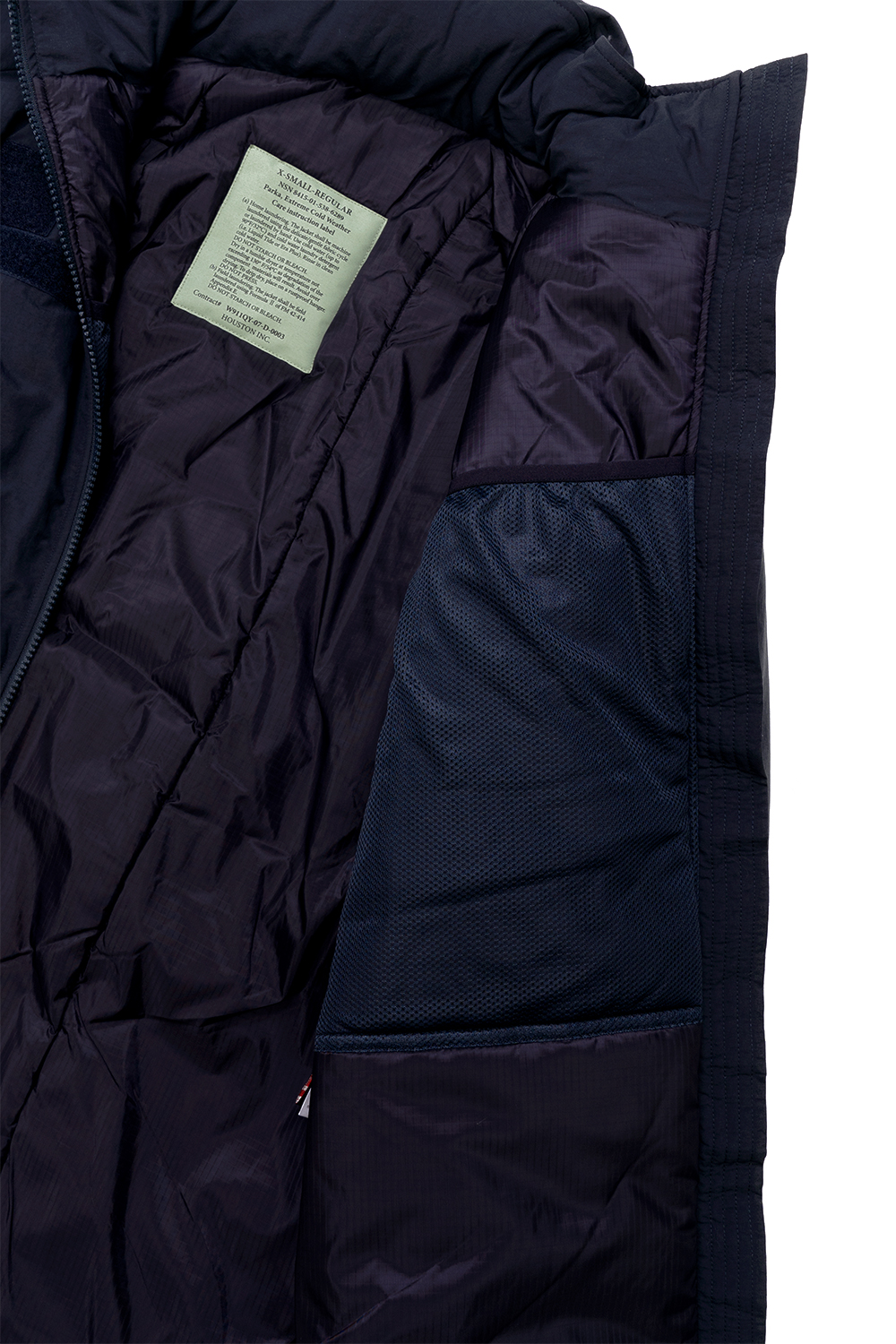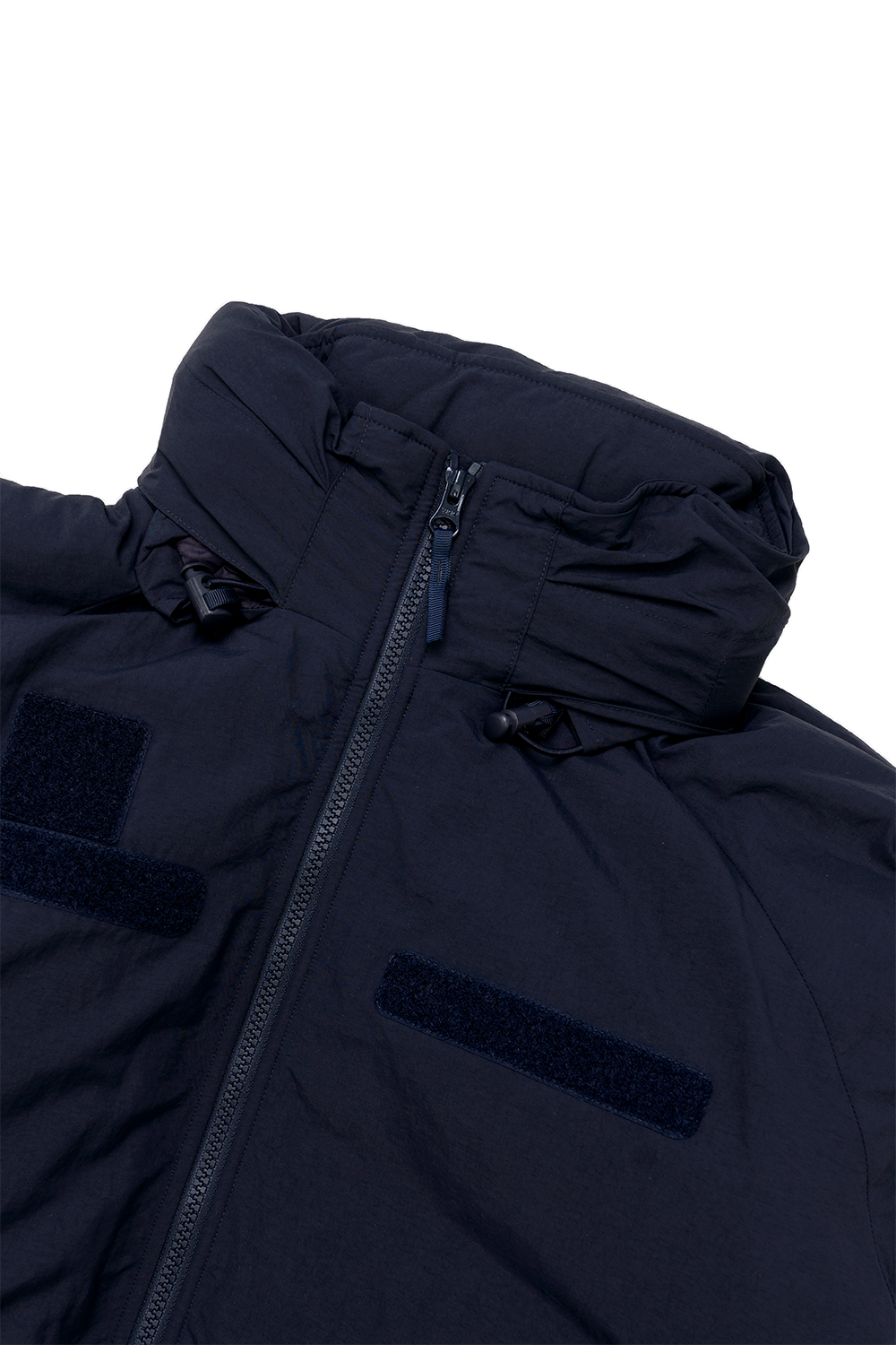 Houston Japan 51331 PRIMAROFT Level7 Jacket - Navy 미군에 채용된 고기능 소재 PRIMAROFT를 충전재로 사용하여 제작한 레벨7 자켓입니다. 원단은 오리지널과 동일한 질감의 나일론을 사용하였으며, 두깨감이 있는 카라에는 지퍼 타입으로 후드를 수납하고 있습니다. 프론트에는 레벨7의 특징인 벨크로를 디자인하였으며, 양측의 포켓 내부에는 밑단의 사이즈감을 조절할 수 있는 고무 스핀이 내장되어 있습니다. 내부의 가슴 부분에는 메쉬 포켓이 있으며, 팔꿈치 부분에는 데미지에 의한 마찰을 방지하기 위하여, 원단을 2중으로 제작하였습니다. 소매 부분은 벨크로로 조절하여 냉기의 침입을 막을수 있습니다. 착용시 'S'가 일반적인 '100 사이즈', 'M'이 '105 사이즈' 정도입니다.
