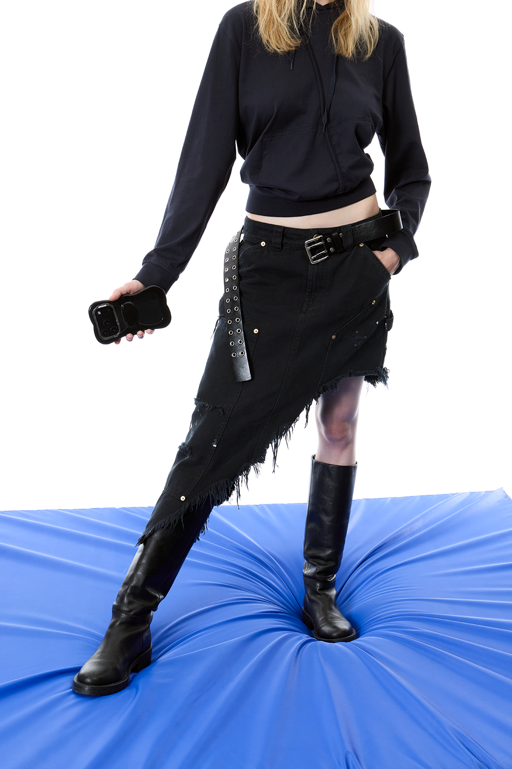 그래그 레이어드 리본 케이스 - 블랙