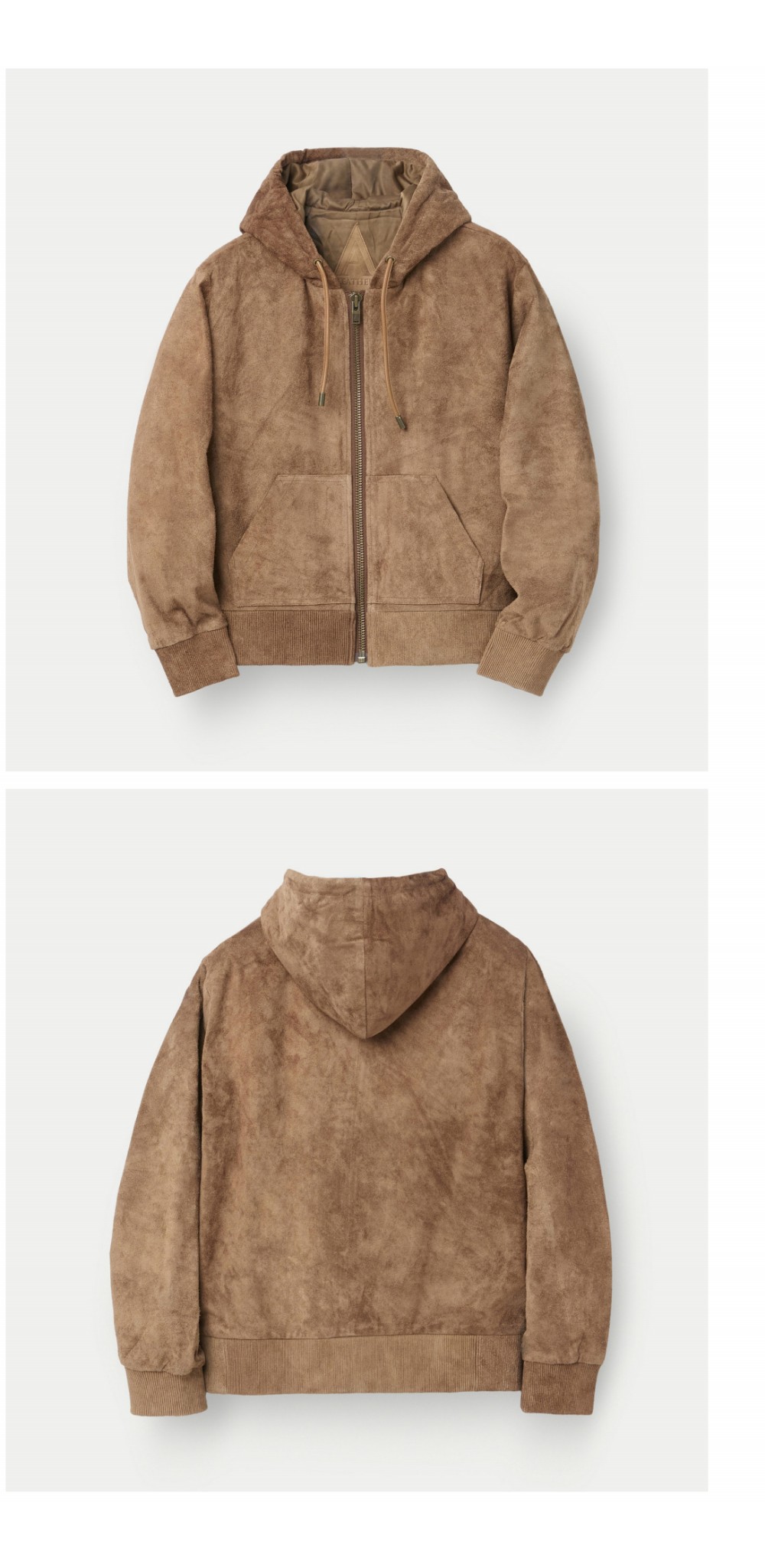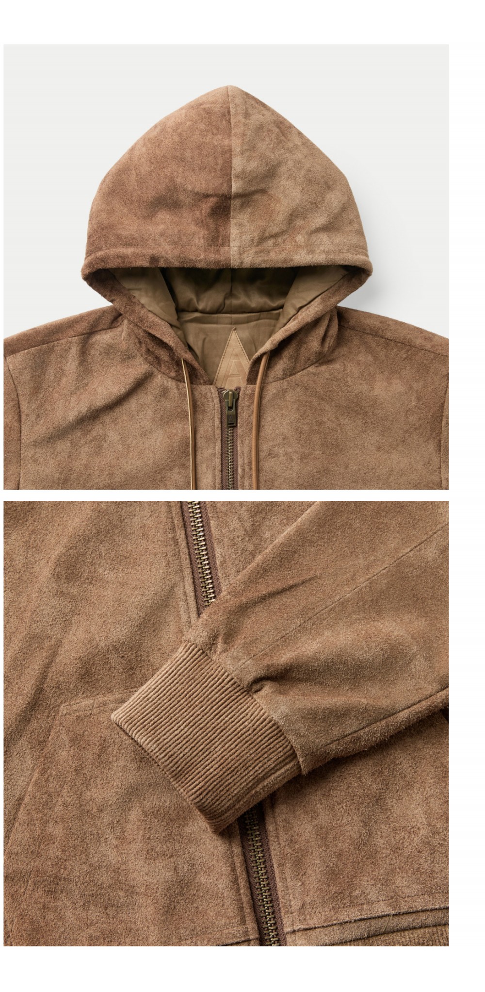 시리즈 에이 레더 집업 후디 브라운