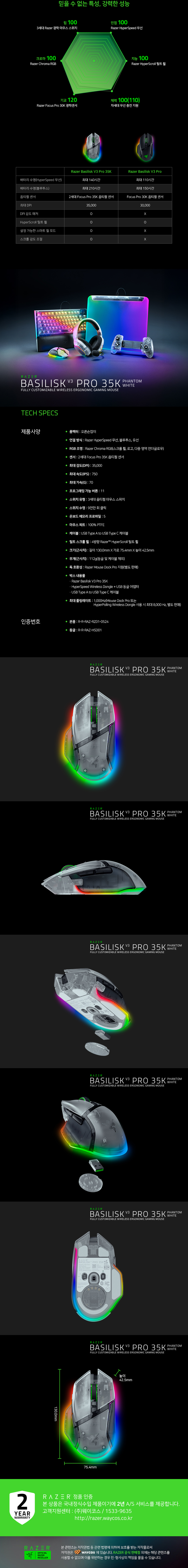 레이저 바실리스크 V3 프로 35K 팬텀 화이트 에디션