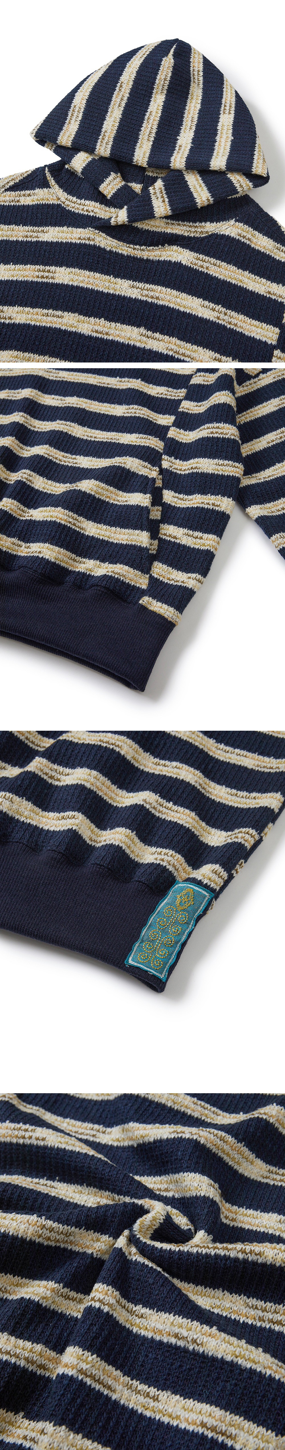 Product Info. - 고품질 울 혼방 소재로 제작된 스트라이프 니트 후드 티셔츠 - 여유로운 착용감의 릴렉스드 핏 실루엣 - 감각적인 언밸런스 패널 디자인 - 패턴 구조를 활용한 절개 포켓 - 감싸는 형태의 후디 네크라인 - 후면 하단부 린넨 소재의 자수 라벨 포인트 *MODEL 173cm, wearing size 00