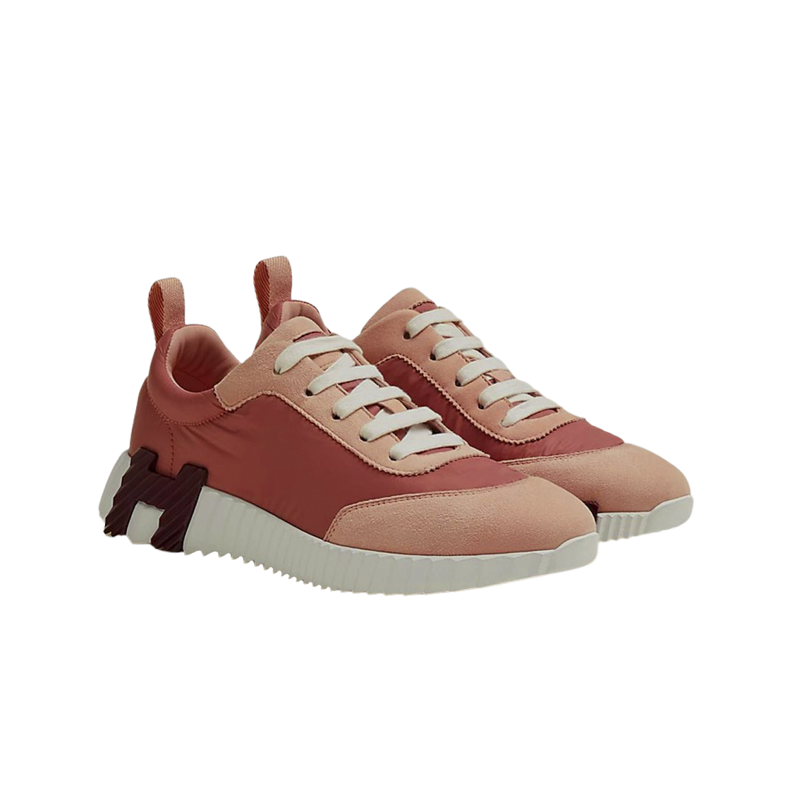 (W) Hermes Bouncing Sneakers Parachute Fabric Suede Goatskin & Rose