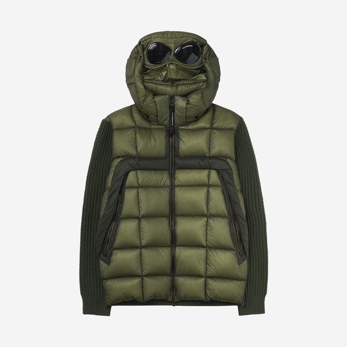 C.P. 컴퍼니 엑스트라파인 메리노 울 믹스드 풀 집 고글 스웨터 엘름우드 그린 - 25FW