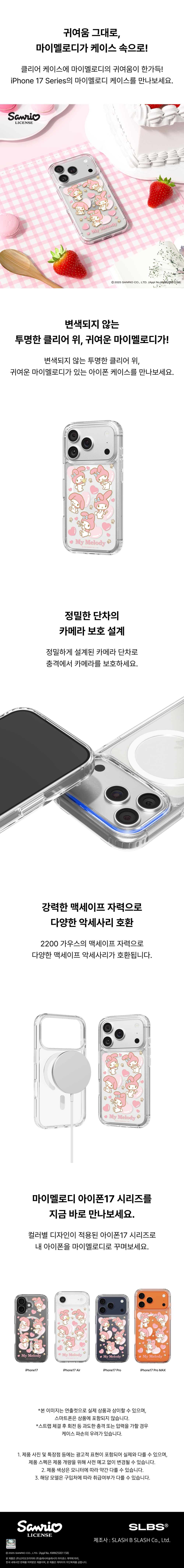 에스엘비에스 마이멜로디 패턴 맥세이프 케이스 for iPhone 17 Series