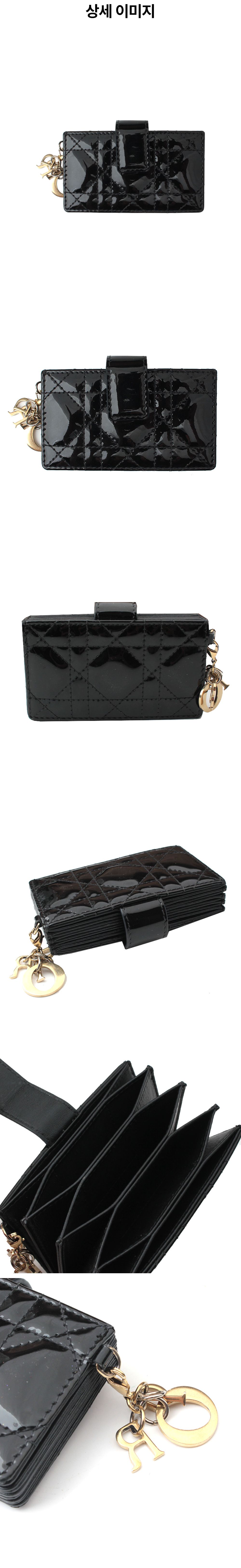 디올 블랙 페이턴트 까나쥬 카드 슬롯 지갑