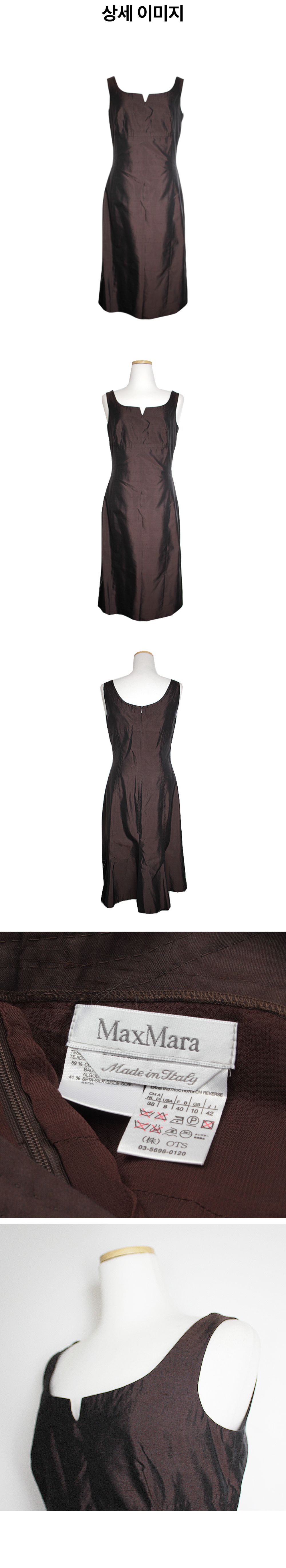 막스마라 딥 브라운 코튼 실크 슬립 드레스 66 사이즈