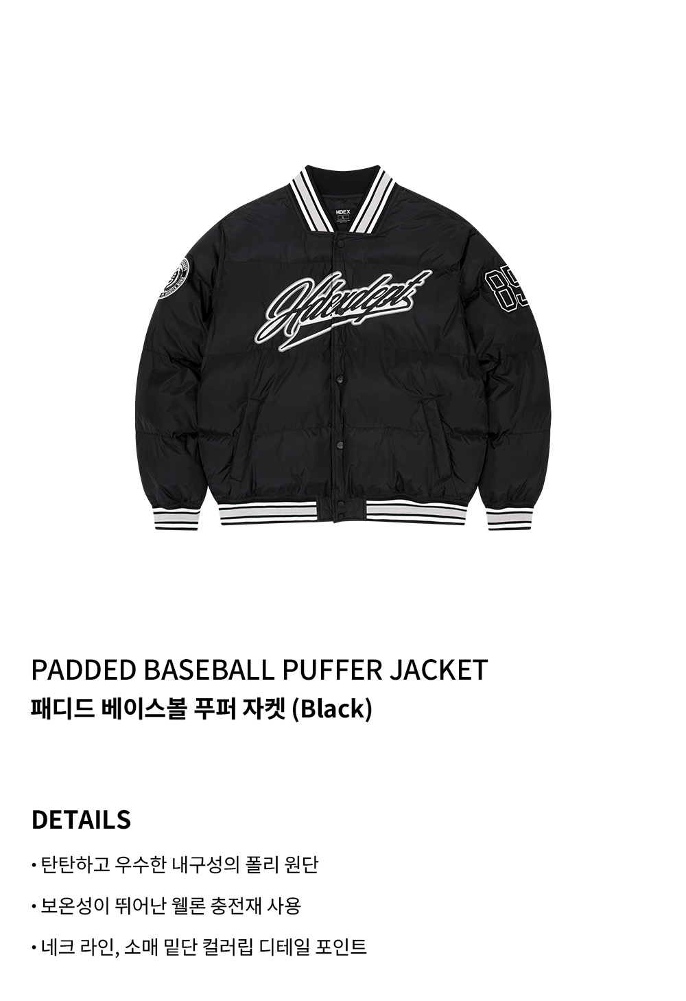 에이치덱스 패디드 베이스볼 푸퍼 자켓 블랙