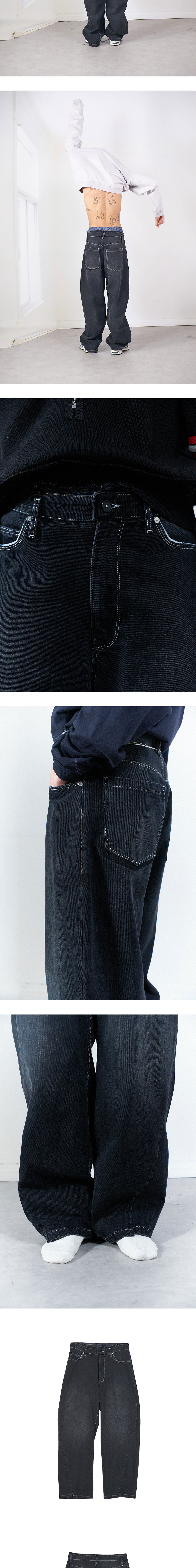 카미엘 포트젠스 위블리 진 블랙입니다. - 릴렉스드 배기핏 - 배색 스티치 - 허리선 디스트레스드 - 절개 디테일 ✧ AI로 제작한 콘텐츠가 포함되었습니다.