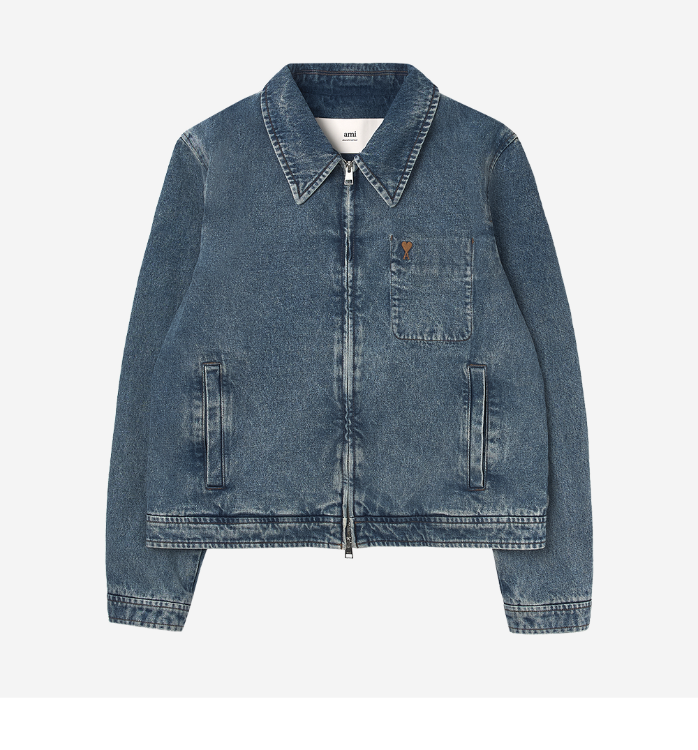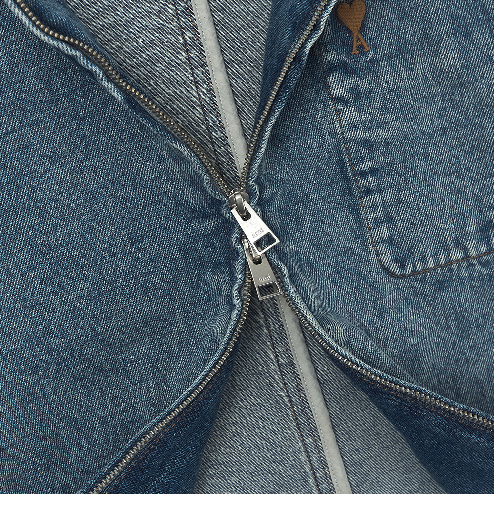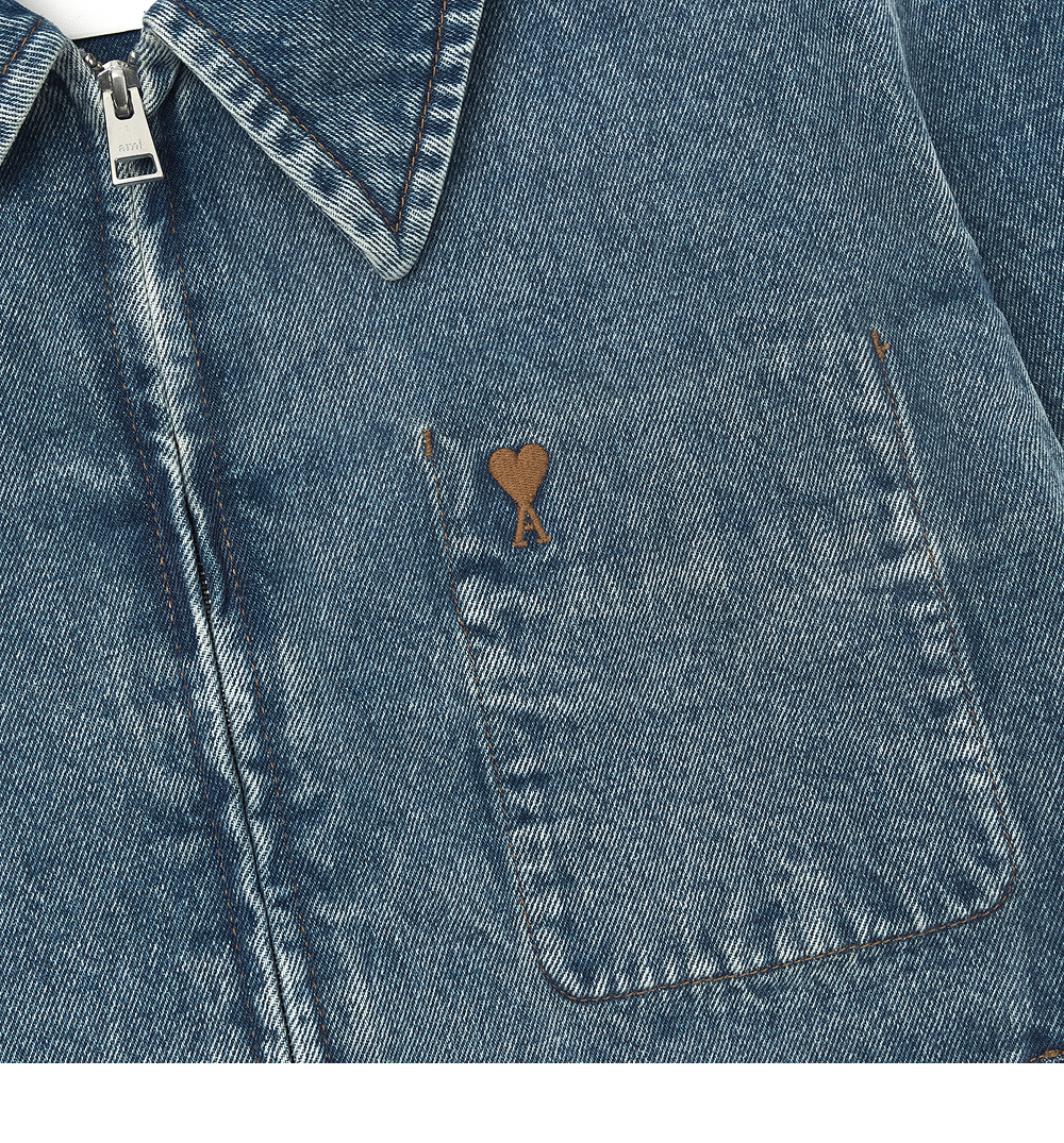 아미 스몰 하트 로고 코튼 지퍼 자켓 유즈드 블루 브라운