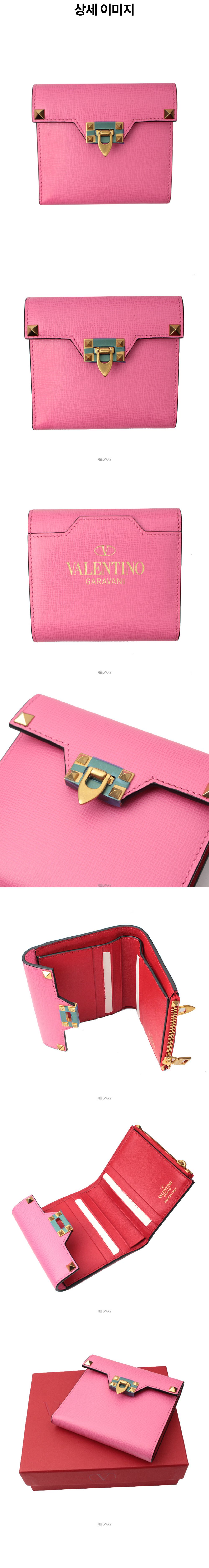 발렌티노 핑크 레더 금장 스터드 반지갑