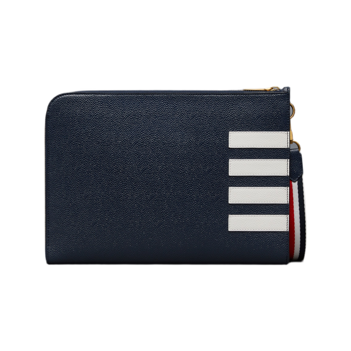 Thom Browne Pebble Grain 4-Bar Gusset Folio Navy