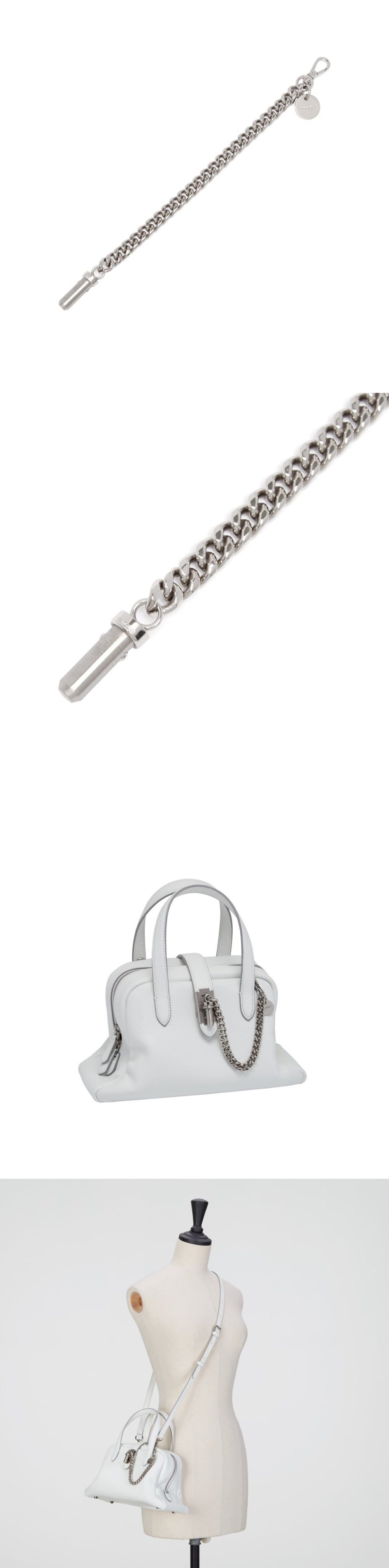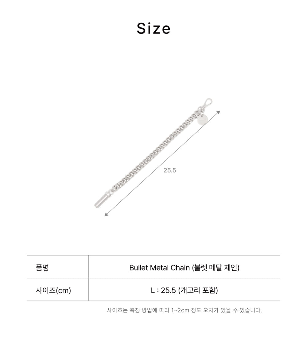 핸들의 디링과 메인 면도칼 장식에 연결 할 수 있는 금속 소재의 Bullet Metal Chain Strap어깨끈과 같이 부착하여 Chain 장식으로도 활용가능한 Chain Strap