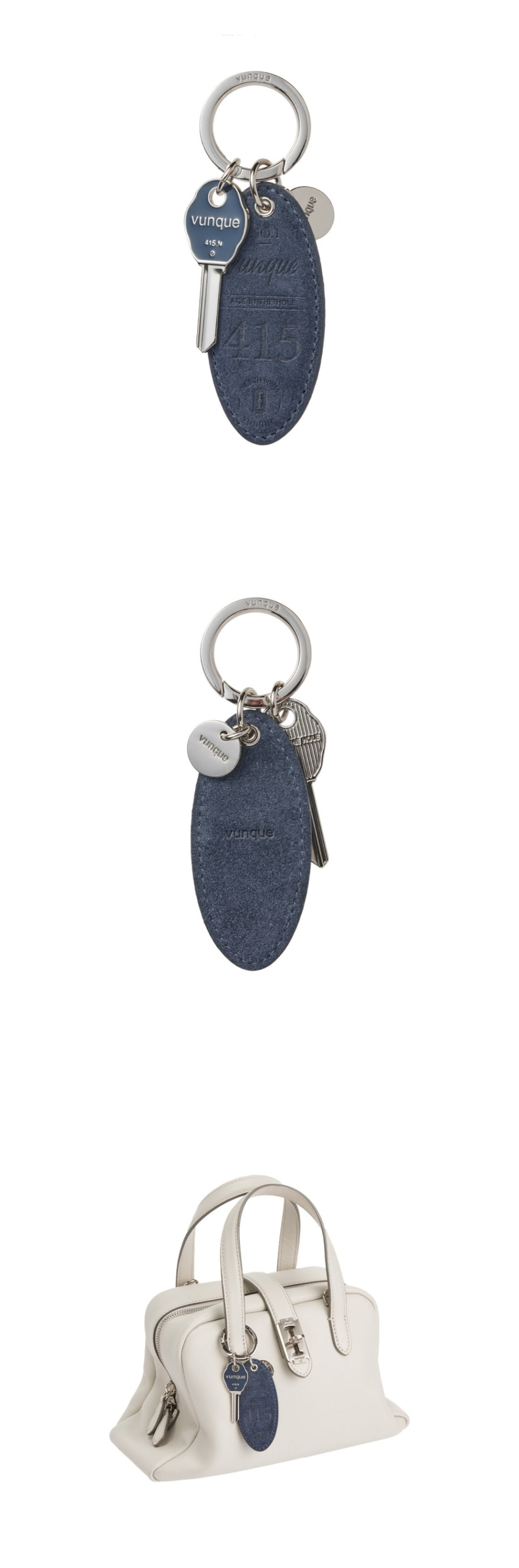 럭키 참의 NEW 쉐입 버전스웨이드에 태운듯한 불박 프린트로 빈티지한 무드를 표현한 참스웨이드 장식과 열쇠 참 별도로 연출 가능 ※ 이염주의 안내소재 특성상 수분 또는 마찰에 의한 이염이 발생할 수 있으니, 착용 시 주의하여 주시기 바랍니다.