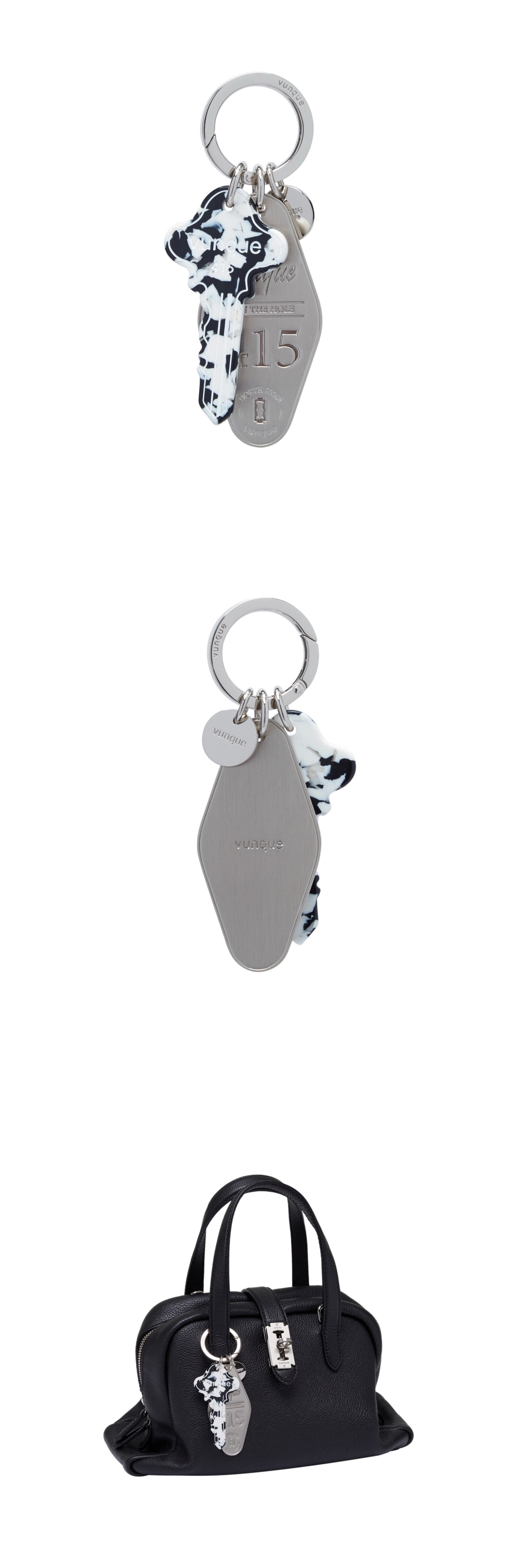 호텔 키를 Motif로 한 New Luckey CharmO모양의 개폐형 고리가 부착되어 개방의 핸들이나 어깨끈등의 부위에 Charm으로 사용하기 좋으며 Keyring의 용도로도 활용가능 열쇠모양을 마블링 아크릴로 제작하여 금속장식과 함께 매칭하여 포인트를 준 Luckey Charm ※아크릴 상품으로 잔 기스가 있을 수 있으며, 상기 사유는 교환 및 환불의 사유기 되지 않음을 참고바랍니다