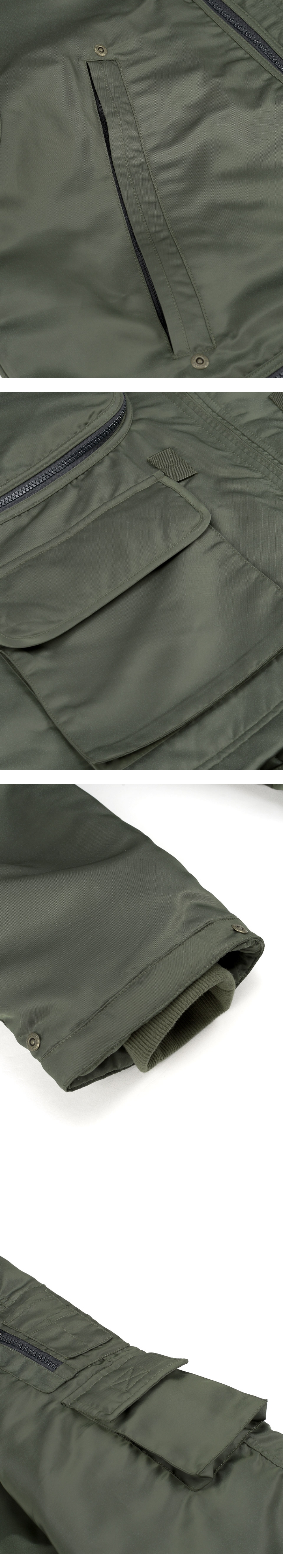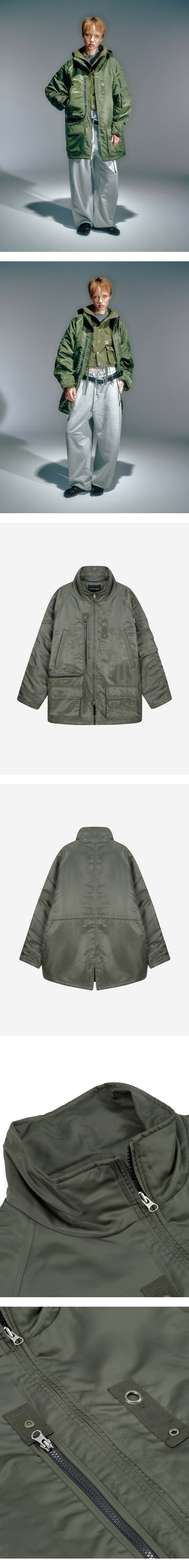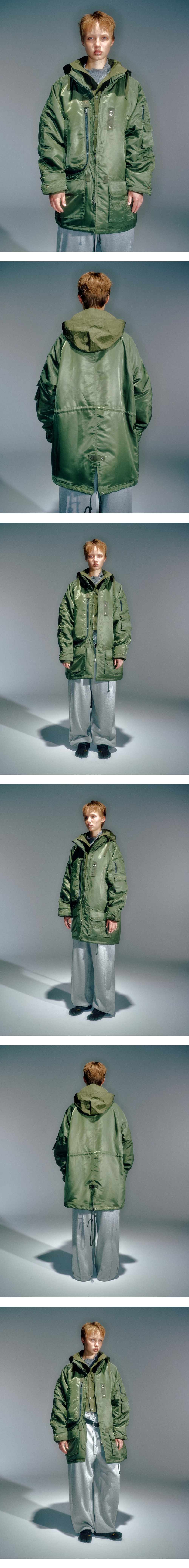 전면부 입체 포켓 디테일 소매 더블 포켓 디테일로 수납공간 확보 밀리터리 웨빙 디테일 베이컨트 제작 리벳 사용 빈티지한 올풀림 연출 YKK 2WAY 지퍼 사용 내부 충전재 사용 S / M / L (CM) Length : 87 / 89 / 91 Bust : 69 / 71 / 73 Sleeve : 86 / 91 / 93 Model is 169cm and is wearing a size S SHELL : POLYESTER 100% LINING 1 : POLYESTER 100% LINING 2 : POLYESTER 100% 1. 단독 드라이클리닝 하십시오. 2. 장식 및 고무제 라벨 다림질을 금지합니다. 3. 기계 건조 사용을 금지합니다. 4. 탈착이 불가능한 장식물은 은박지로 싼 후 클리닝 하십시오. 5. 올 뜯김 및 필링에 주의하십시오. 6. 이염 및 변색을 주의하십시오. 7. 가열 제품의 사용을 절대 금합니다. 8. 난방 기구 등 열기 가까이 두지 마십시오. 9. 자수 및 프린트 부분에 마찰이 생기지 않도록 주의하세요.