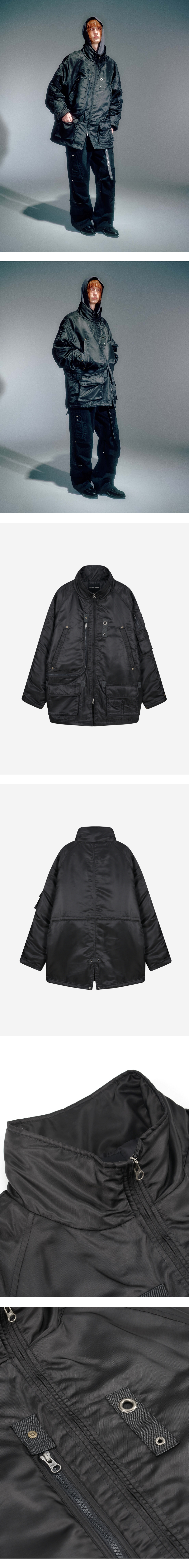 전면부 입체 포켓 디테일 소매 더블 포켓 디테일로 수납공간 확보 밀리터리 웨빙 디테일 베이컨트 제작 리벳 사용 빈티지한 올풀림 연출 YKK 2WAY 지퍼 사용 내부 충전재 사용 S / M / L (CM) Length : 87 / 89 / 91 Bust : 69 / 71 / 73 Sleeve : 86 / 91 / 93 Model is 182cm and is wearing a size L SHELL : POLYESTER 100% LINING 1 : POLYESTER 100% LINING 2 : POLYESTER 100% 1. 단독 드라이클리닝 하십시오. 2. 장식 및 고무제 라벨 다림질을 금지합니다. 3. 기계 건조 사용을 금지합니다. 4. 탈착이 불가능한 장식물은 은박지로 싼 후 클리닝 하십시오. 5. 올 뜯김 및 필링에 주의하십시오. 6. 이염 및 변색을 주의하십시오. 7. 가열 제품의 사용을 절대 금합니다. 8. 난방 기구 등 열기 가까이 두지 마십시오. 9. 자수 및 프린트 부분에 마찰이 생기지 않도록 주의하세요.