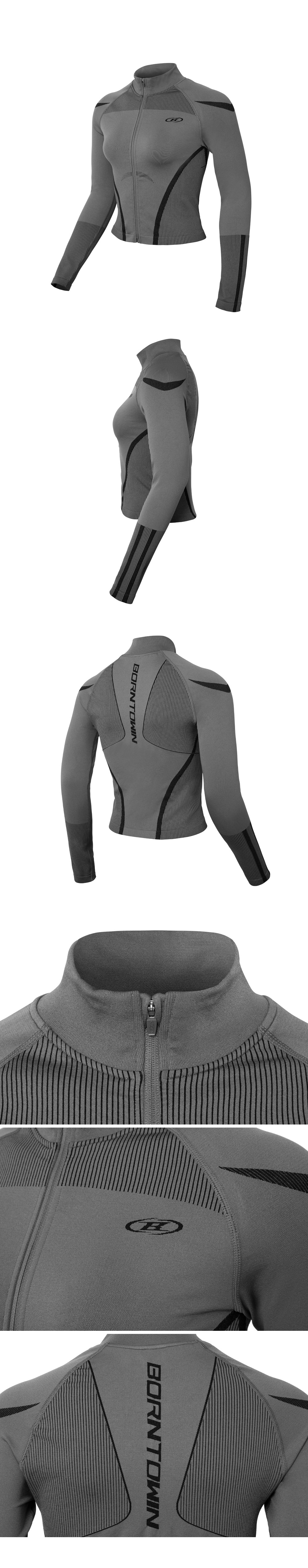 BORN TO WIN W Symbol B Eclipse Seamless Full Zip-Up Jacket Charcoal