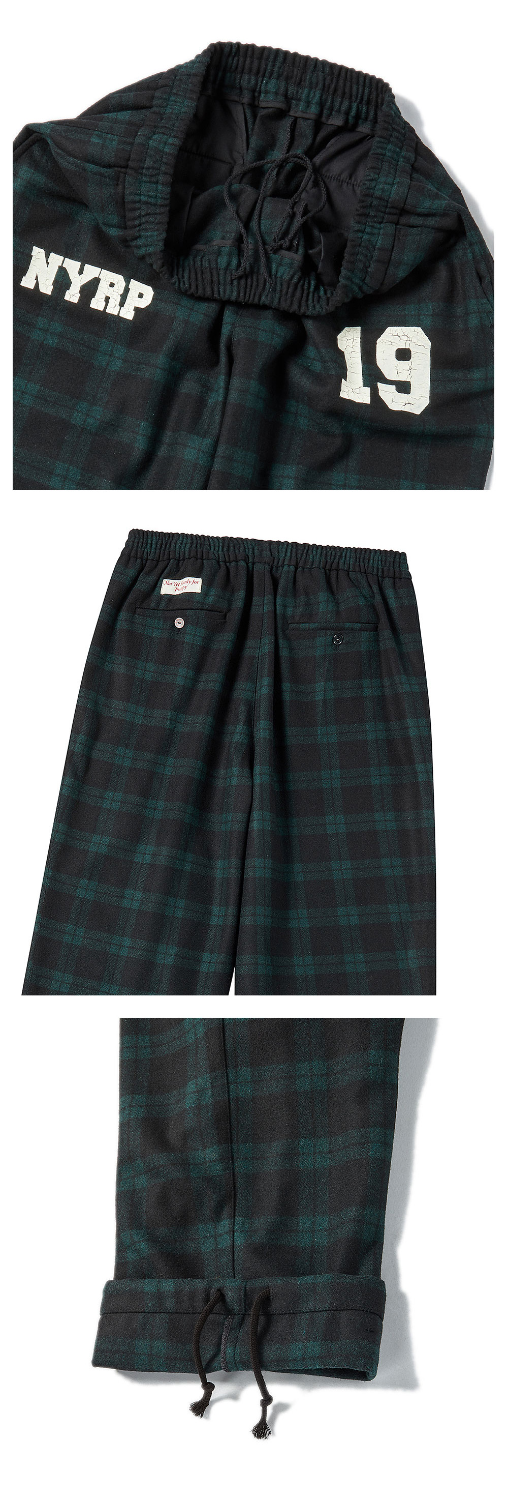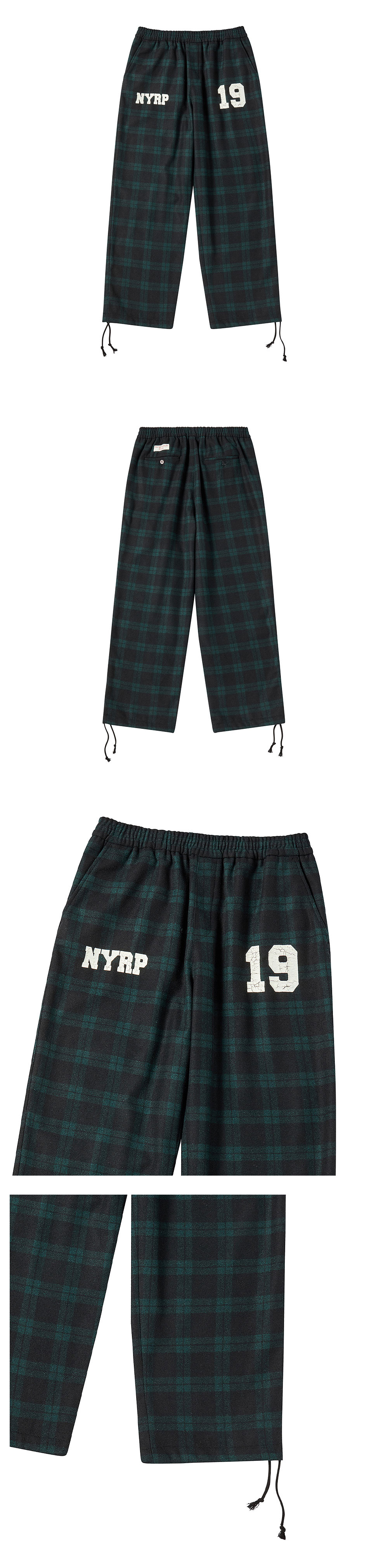 ㆍ한정 수량으로 제작된 컬렉션 라인의 울 소재의 타탄 팬츠 ㆍ울 혼방으로 포근함과 고급스러움을 더한 타탄 체크 팬츠 ㆍ허리와 밑단의 스트링으로 체형에 맞게 조절 가능한 편안한 핏 ㆍ표면의 크랙 프린트 디테일이 빈티지한 무드를 연출 ㆍ포멀한 체크 패턴에 유니크한 워싱 감성을 더한 믹스무드 아이템 ㆍ유니섹스 상품으로 제작