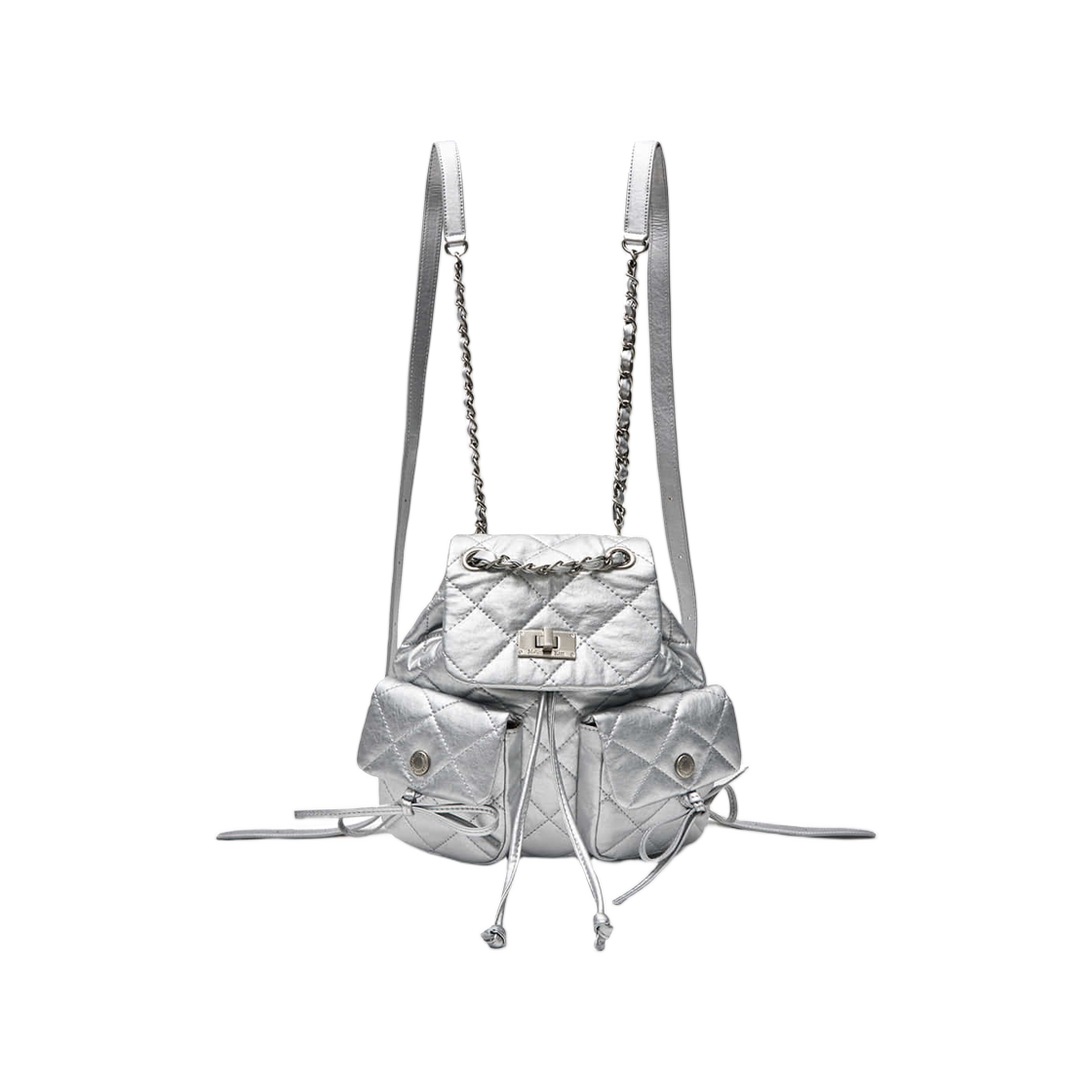 마뗑킴 더블 포켓 퀼팅 미니 백팩 실버