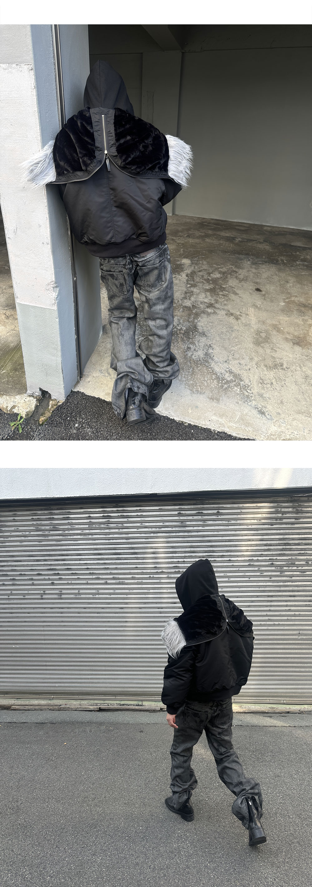 표면에 짙은 왁스 코팅이 가공된 하드 왁스 데님 으로 기계 세탁 및 드라이클리닝은 피해주시기 바랍니다. 왁스 코팅이 손상되거나 녹을수 있습니다