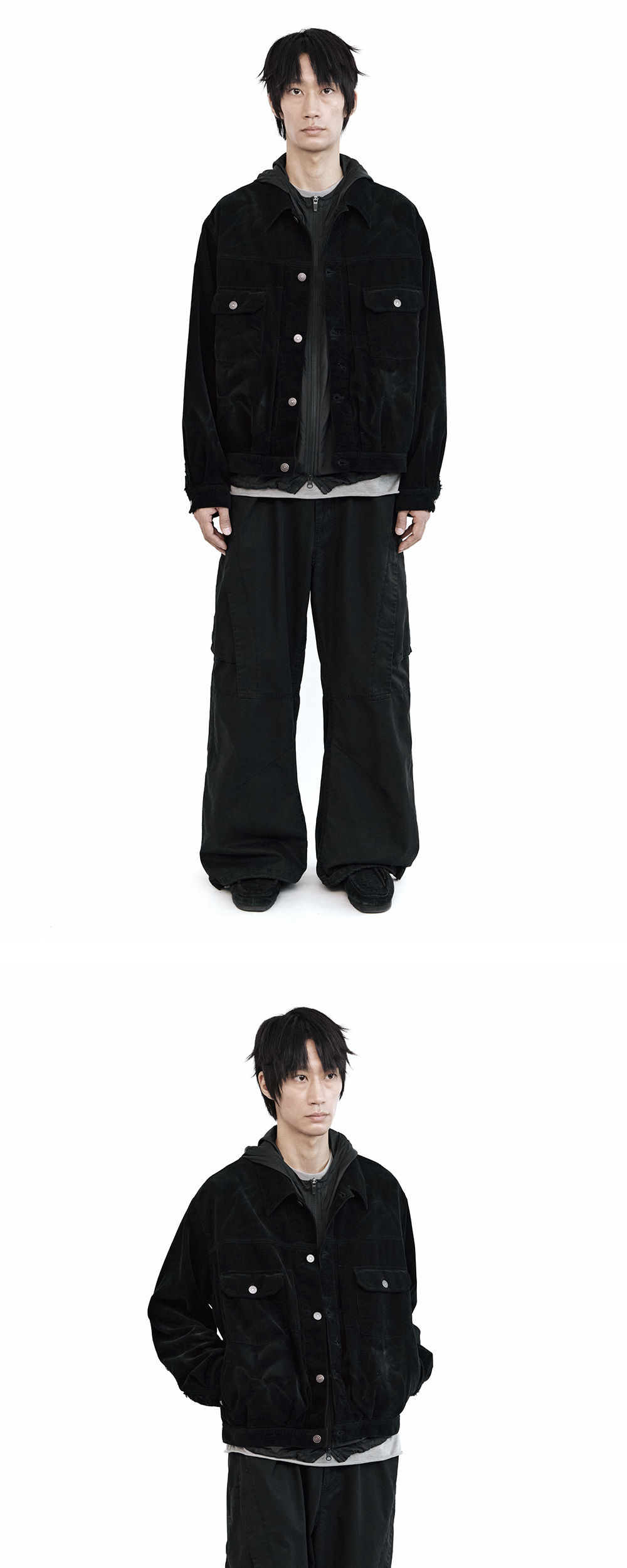 half boro trucker jacket - black, brown - 수작업으로 진행된 소매의 보로 & 사시코 패브릭 - 가먼트 다잉 & 워싱을 반복하여 구현한 부드러운 터치와 착용감, 오묘한 광택감 - 블랙 컬러는 불규칙적인 워싱 적용, 브라운 컬러는 플레인하게 완성 - 전면 2개의 플랩 포켓, - 사이드 포켓 & 내부 벨크로 포켓 - 사이드 어드저스터 *모델: 170 중반 / 마른 체형, 3사이즈 착용 *일반 체형 기준 - 170cm 초반 이하 2사이즈 권장 - 170cm 중반 3사이즈 권장 - 170cm 후반~180cm 초반 4사이즈 권장