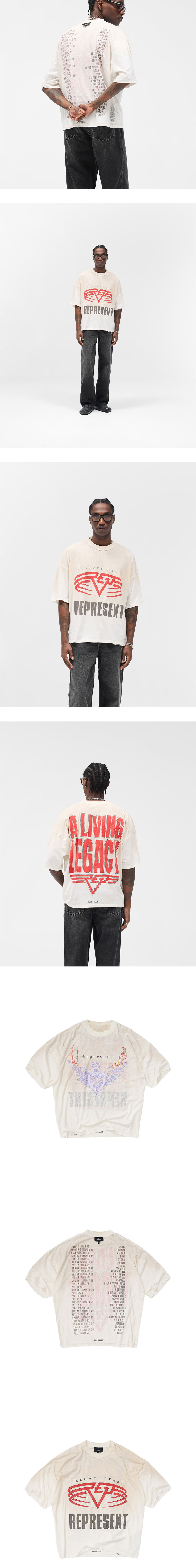 리프레젠트 리빙 레거시 티셔츠 워시드 에크루입니다. - 오버사이즈 박시핏 - 리버시블 그래픽 프린팅 - 빈티지 워싱 - 디스트레스드 로우 엣지 - 밑단 시그니터 메탈 바 - 라벨 탈부착 가능 ✧ AI로 제작한 콘텐츠가 포함되었습니다.