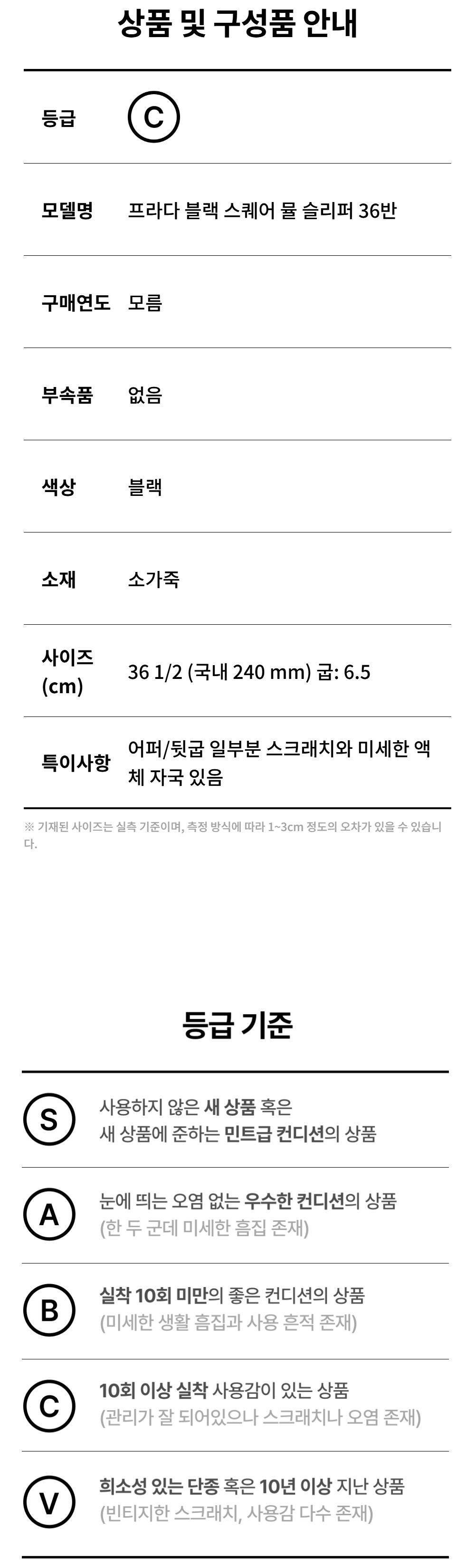 프라다 블랙 스퀘어 뮬 슬리퍼 36.5 사이즈