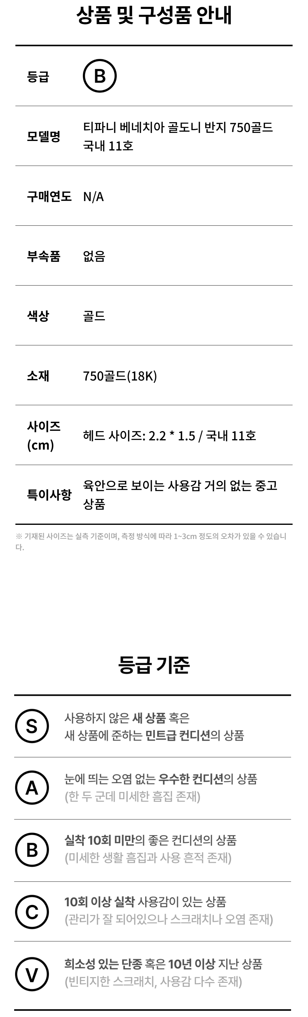 티파니앤코 베네치아 골도니 반지 750 골드 국내 11호