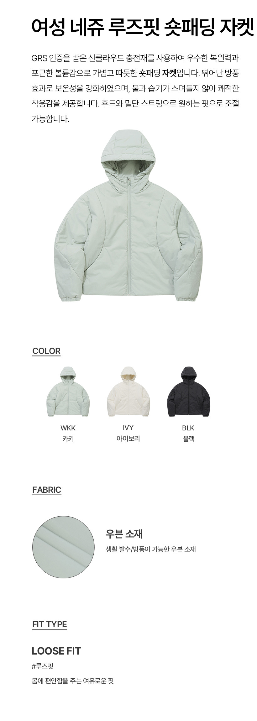 르꼬끄 스포르티브 여성 네쥬 루즈핏 숏 패딩 자켓 - 블랙 QQ422OPDO1