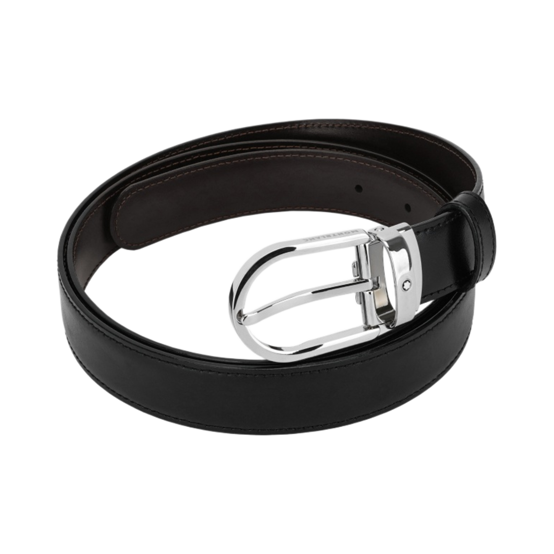 Montblanc Horseshoe Buckle 30mm Reversible Leather Belt Black Brown