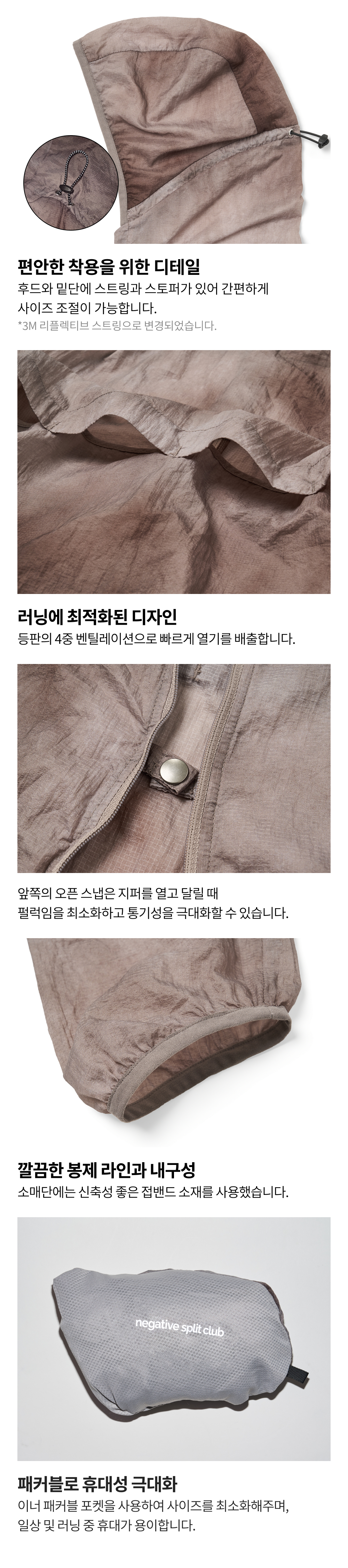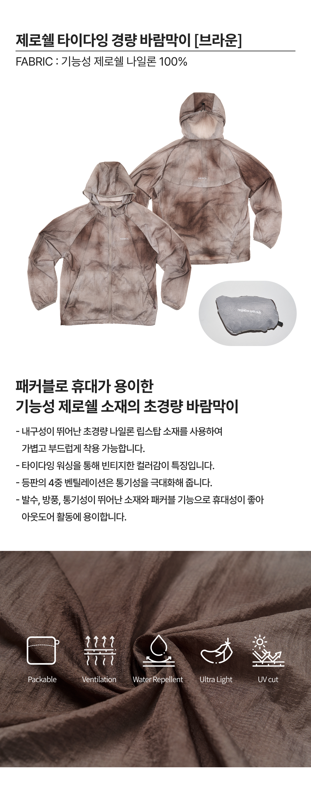 네거티브 스플릿 클럽 제로쉘 타이다잉 경량 바람막이 브라운