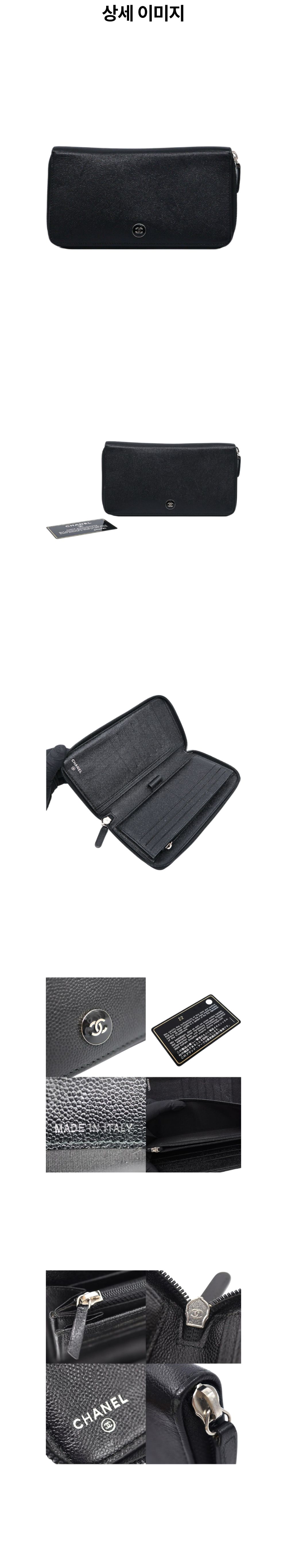 샤넬 블랙 캐비어 스킨 CC 코코버튼 로고 지퍼 장지갑 (22번대)