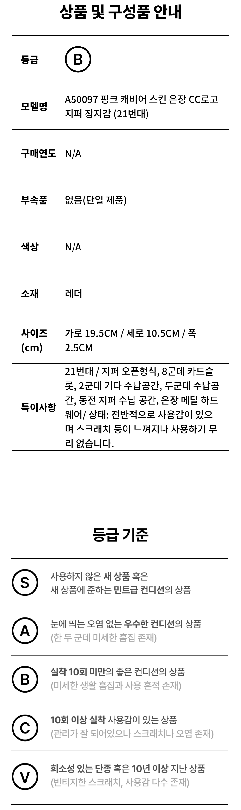 샤넬 A50097 핑크 캐비어 스킨 은장 CC로고 지퍼 장지갑 (21번대)