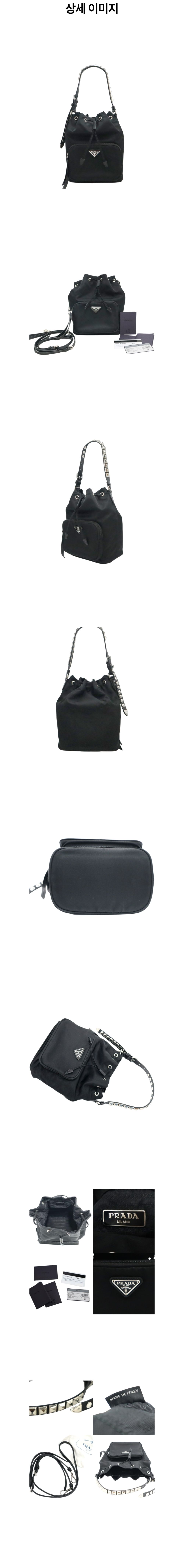 프라다 1BH038 블랙 나일론 포코노 스터드 버킷백 2WAY