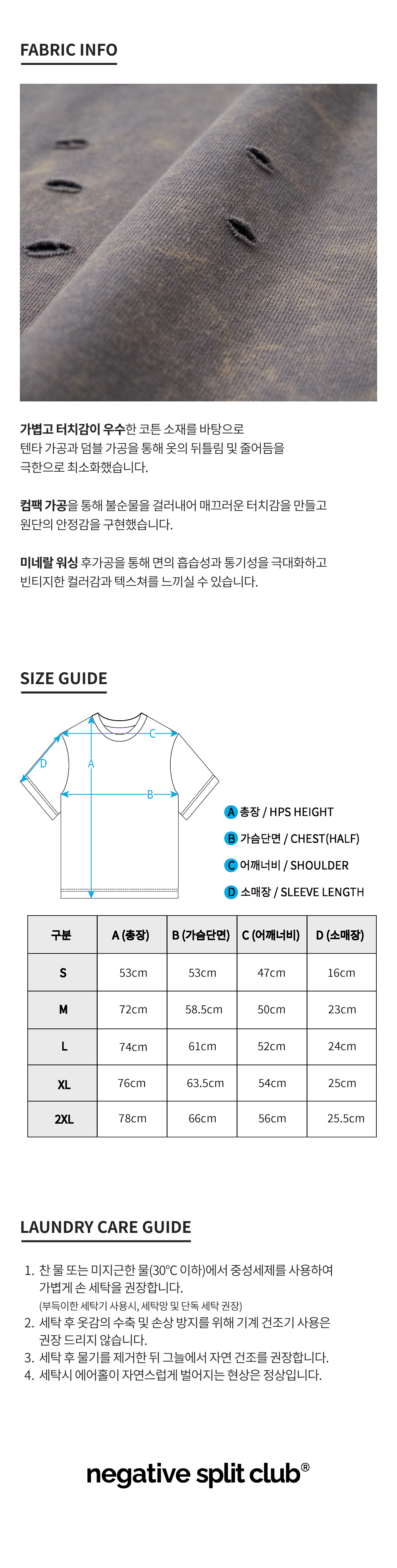 네거티브 스플릿 클럽 에어액트 미네랄 베이직 티셔츠 차콜