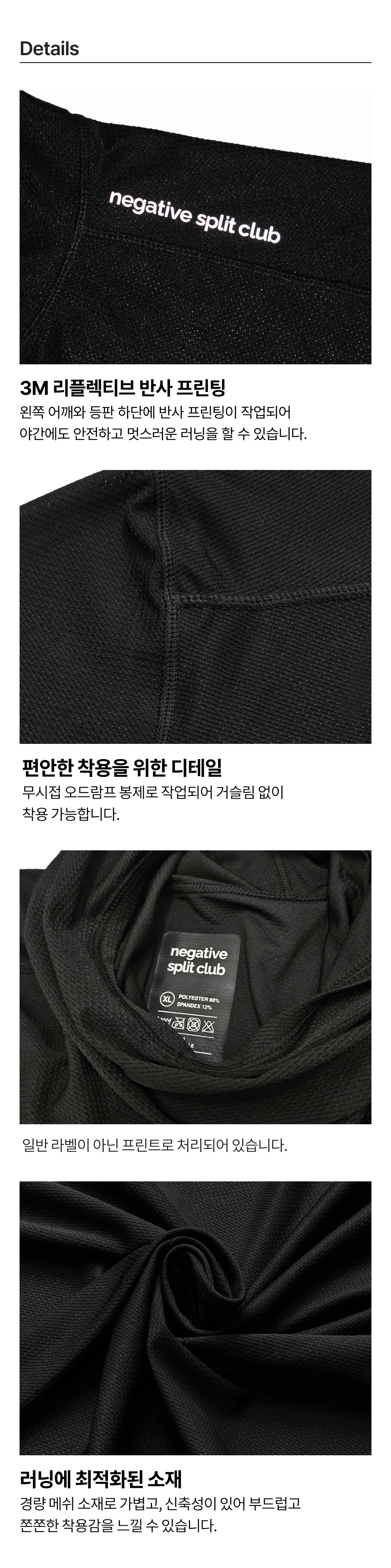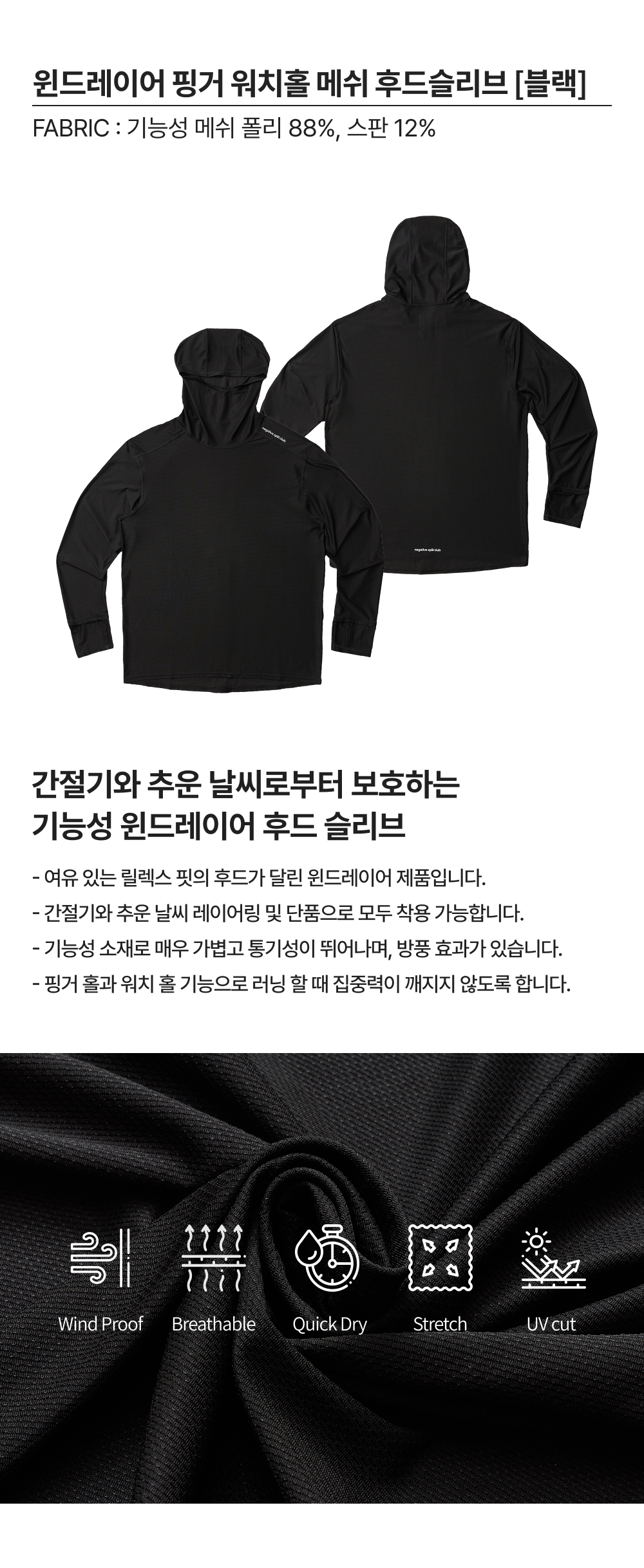 네거티브 스플릿 클럽 윈드레이어 핑거 워치홀 메쉬 후드슬리브 블랙