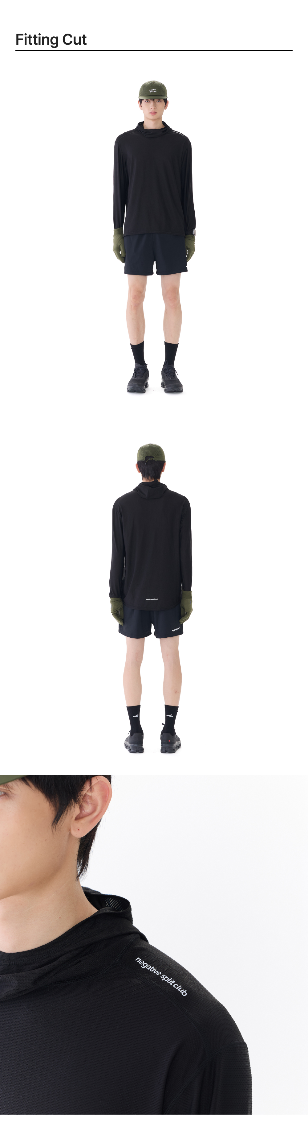 negative split club Windlayer Finger Watch-Hole Mesh Hood Sleeve Black