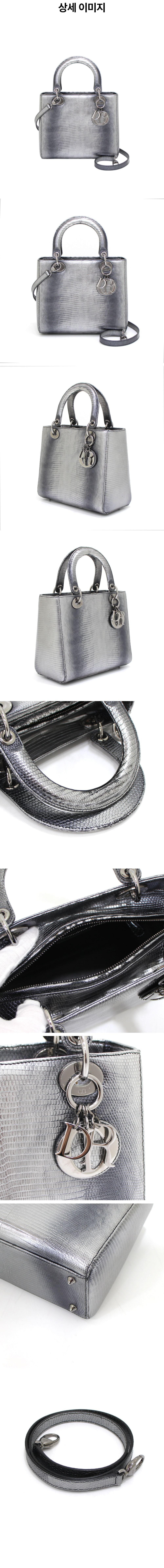 디올 메탈릭 실버 레이디 디올 리자드 패턴 미디엄 토트백 겸 숄더백 aa40048