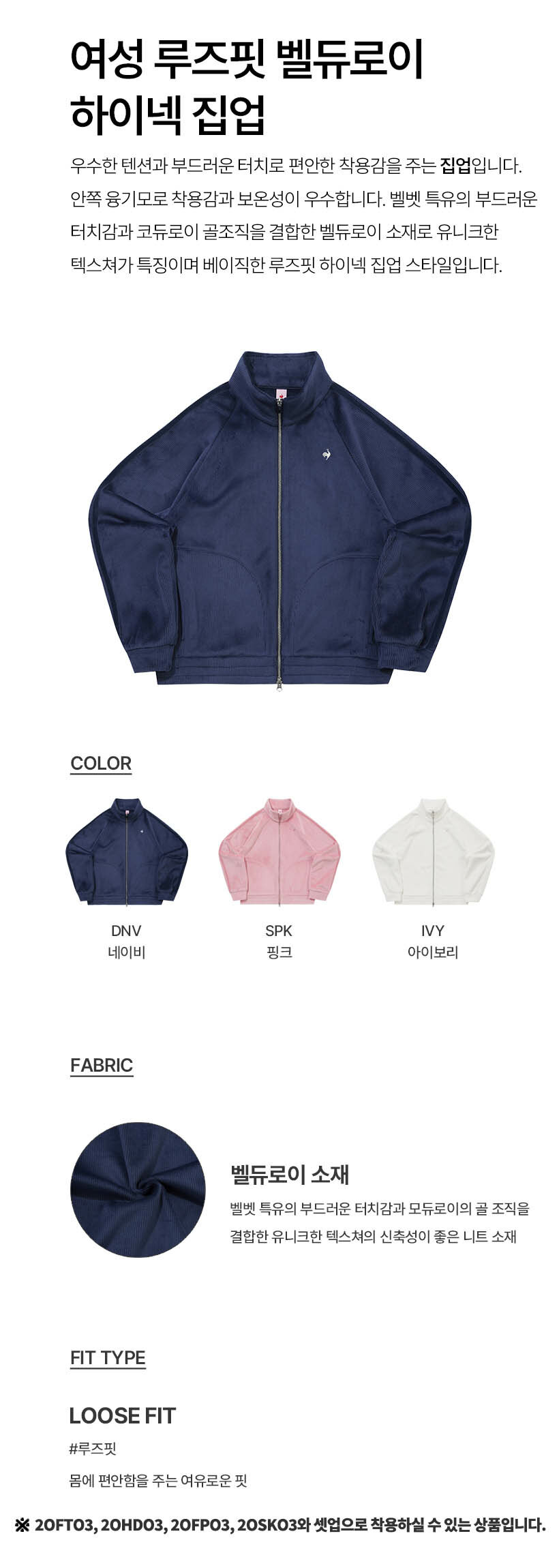 르꼬끄 스포르티브 여성 루즈핏 벨듀로이 하이넥 집업 - 핑크 QQ422OFTO3