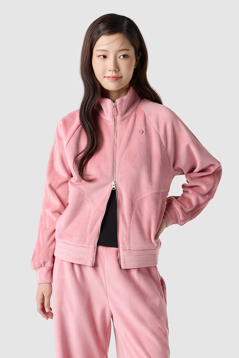 르꼬끄 스포르티브 여성 루즈핏 벨듀로이 하이넥 집업 - 아이보리 QQ422OFTO3