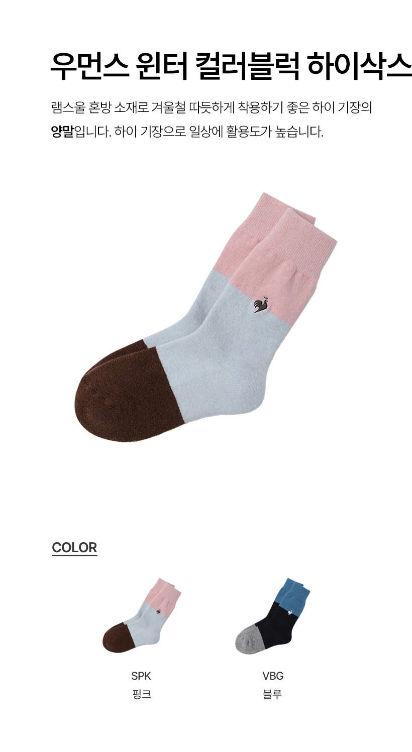 르꼬끄 스포르티브 여성 윈터 컬러블럭 하이삭스 - 블루 QQ322WSC91