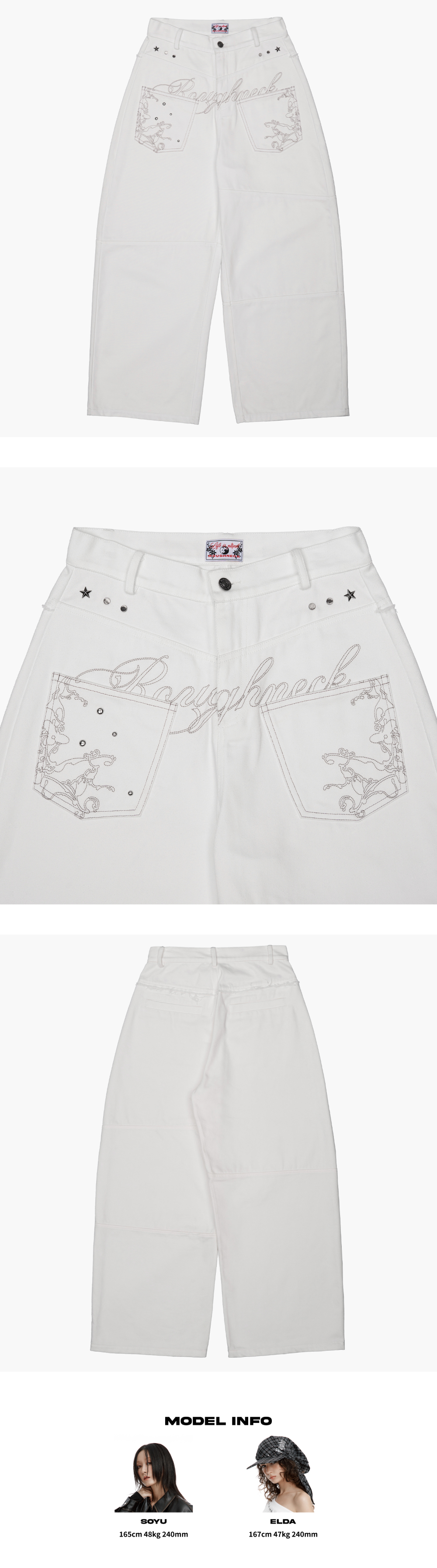 앞뒤가 반전된 듯한 유니크한 디자인으로, 앞면에 자리한 백포켓 자수와 실버 스터드 장식이 포인트를 더합니다. 곡선형 커브드 패턴으로 제작되어 자연스럽게 허리를 잡아주며, 슬림한 허리 라인을 연출합니다. 탄탄한 면 소재와 와이드한 핏으로 편안한 착용감과 스타일리시한 실루엣을 동시에 제공합니다. Model : 167cm 47kg / S Size 착용
