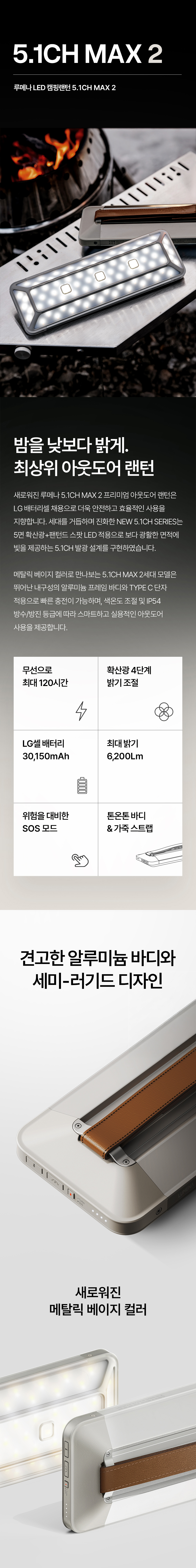 루메나 5.1CH MAX 2 LED 캠핑랜턴 메탈릭 베이지